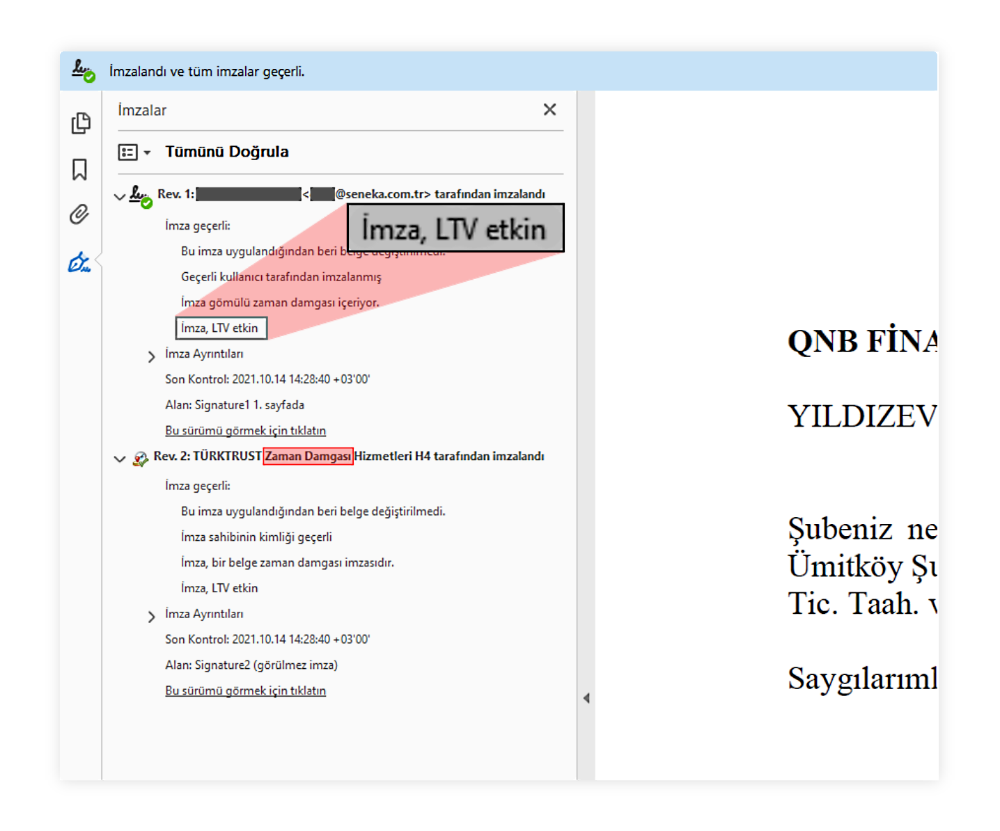 İmza doğrulamaBelgeleri kimler imzalamış, imzalama zamanları ve imzaların yasal olarak geçerli olup olmadığını öğrenebilirsiniz.